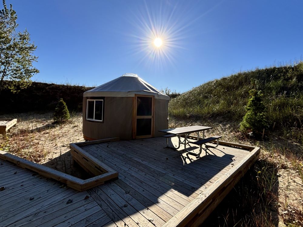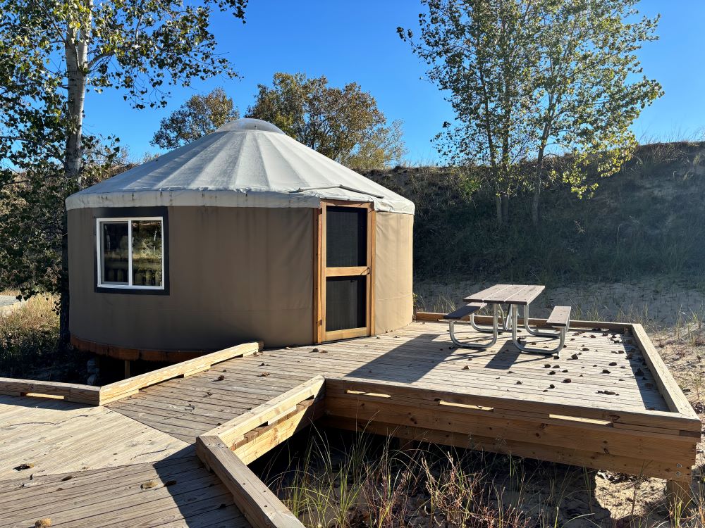 The Idema Explorers Camp (IEC) at Ottawa Sands offers a unique overnight experience at the intersection of Lake Michigan and the Grand River in Ottawa County. The IEC features three treehouses, five yurts, and 10 tent pad sites. This project was made possible thanks to a $3.48 million gift from the Bill and Bea Idema Foundation.